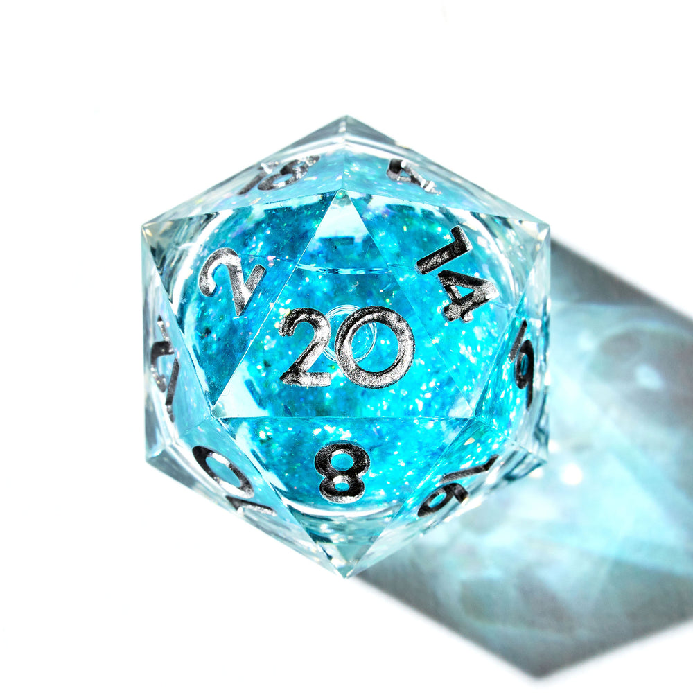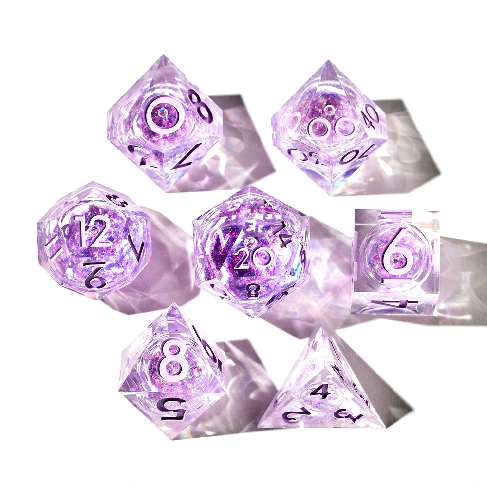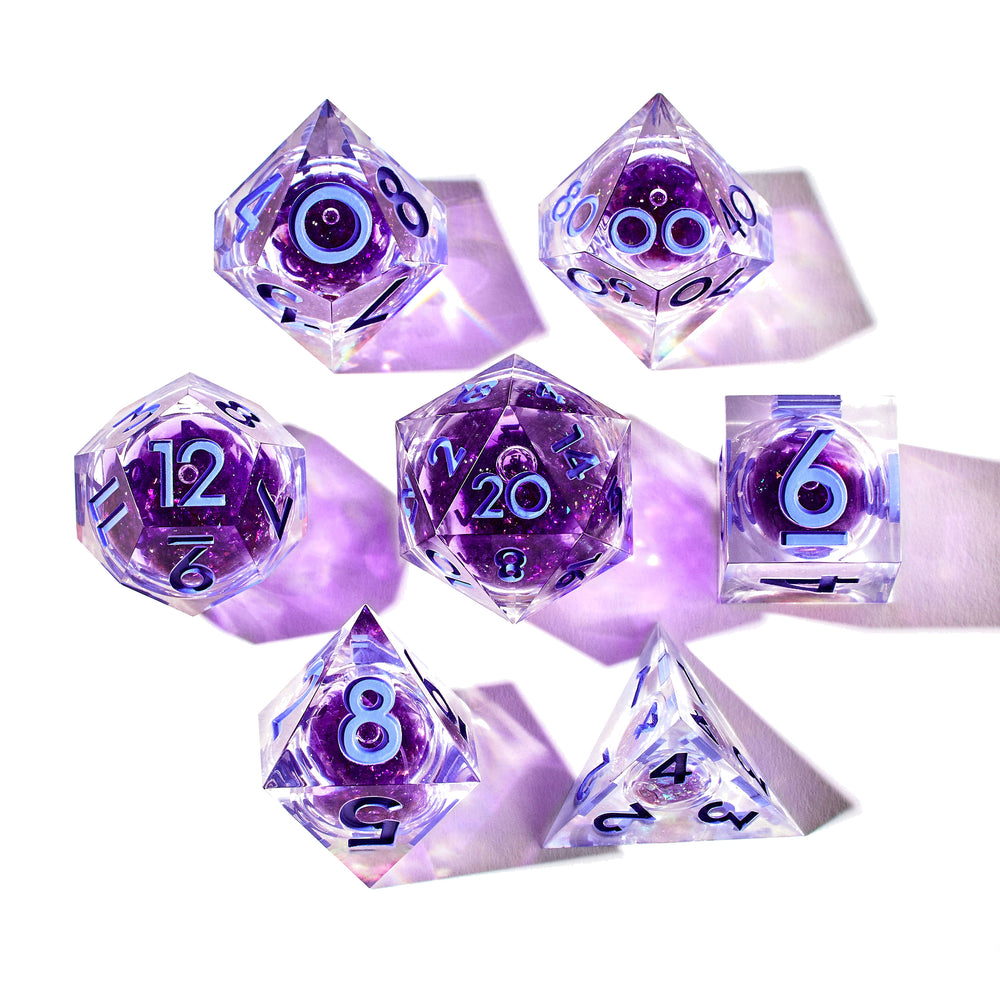Liquid Core Dice are the pinnacle of beauty when it comes to polyhedral dice, with all the same qualities as our sharp edge resin dice with a bit of added magic. These dice have a liquid filled sphere in their shell, combined with mica powders and mylar inclusions to create beautiful effects that will make you the envy of your party.