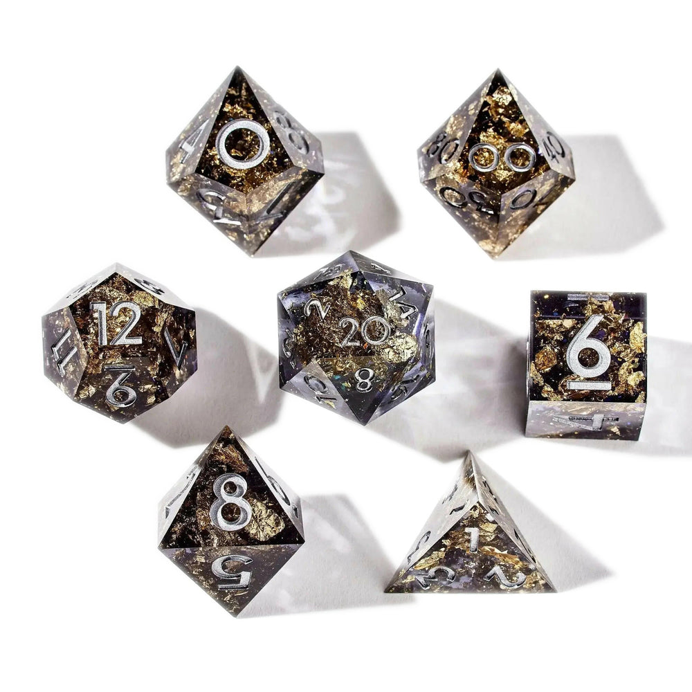 Every artisan set is hand-poured, so the dice may differ slightly in color and material suspension.