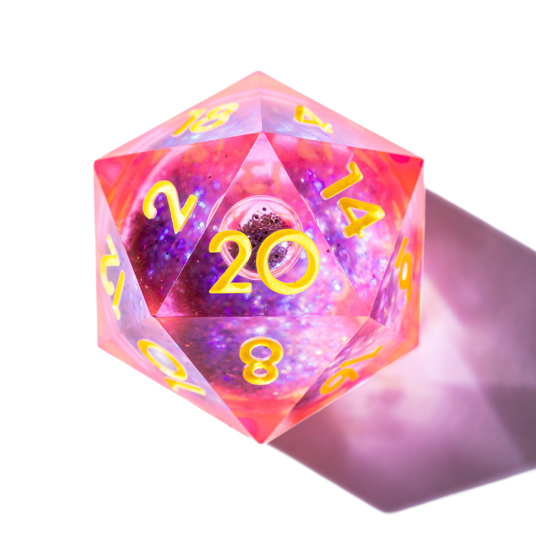 Sharp-edged construction allows for more randomized rolls when compared to traditional rounded-edge RPG dice.