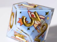 Down the Rabbit Hole is an Iconic 7-Piece Dice Set inspired by the White Rabbit from Lewis Carroll’s whimsical tale, Alice’s Adventures in Wonderland. It features illustrations of the rabbit against a pale sky blue resin core - inspired by the color of Alice’s dress.