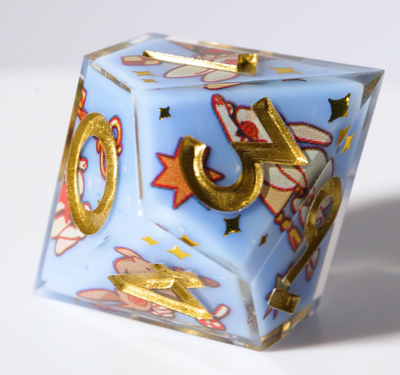 Materials & Inclusions: Transparent exterior shell, an opaque sky blue resin core, whimsical rabbit stickers, gold inked numbers.
