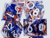 Every artisan set of blue dice is hand-made from clear resin with a blue and white swirl, copper flakes, and white ink for a truly awe-inspiring experience that will make your gaming experience a critical success.