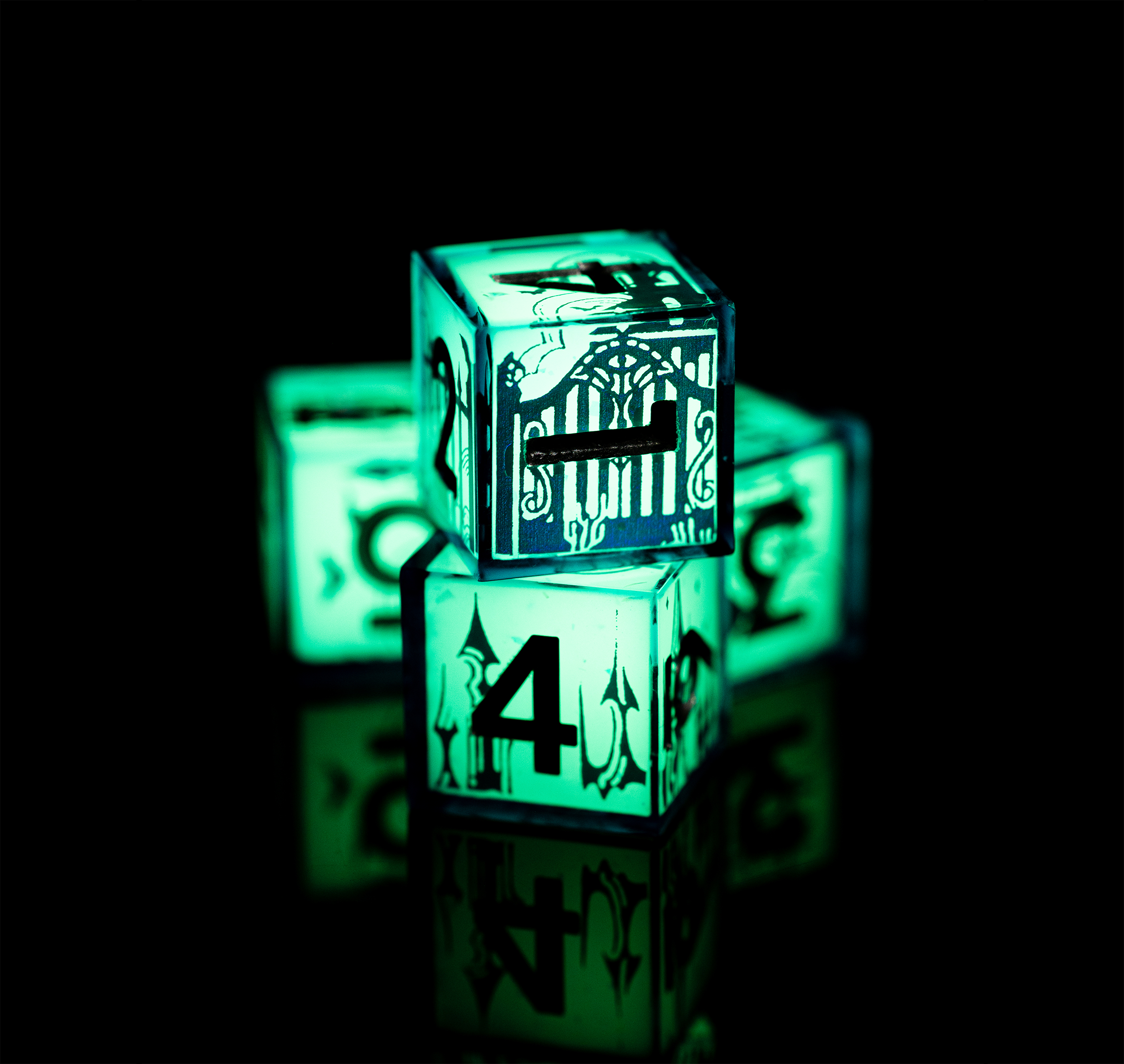Haunted Landscapes 4-Piece Glow in the Dark Iconic D6 Dice SetSale price$45.00