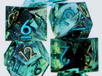 Every artisan set is hand-poured, so there may be slight imperfections or differences in color and material suspension in the dice.