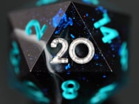 Sharp-edged construction allows for more randomized rolls when compared to traditional rounded-edge RPG dice.
